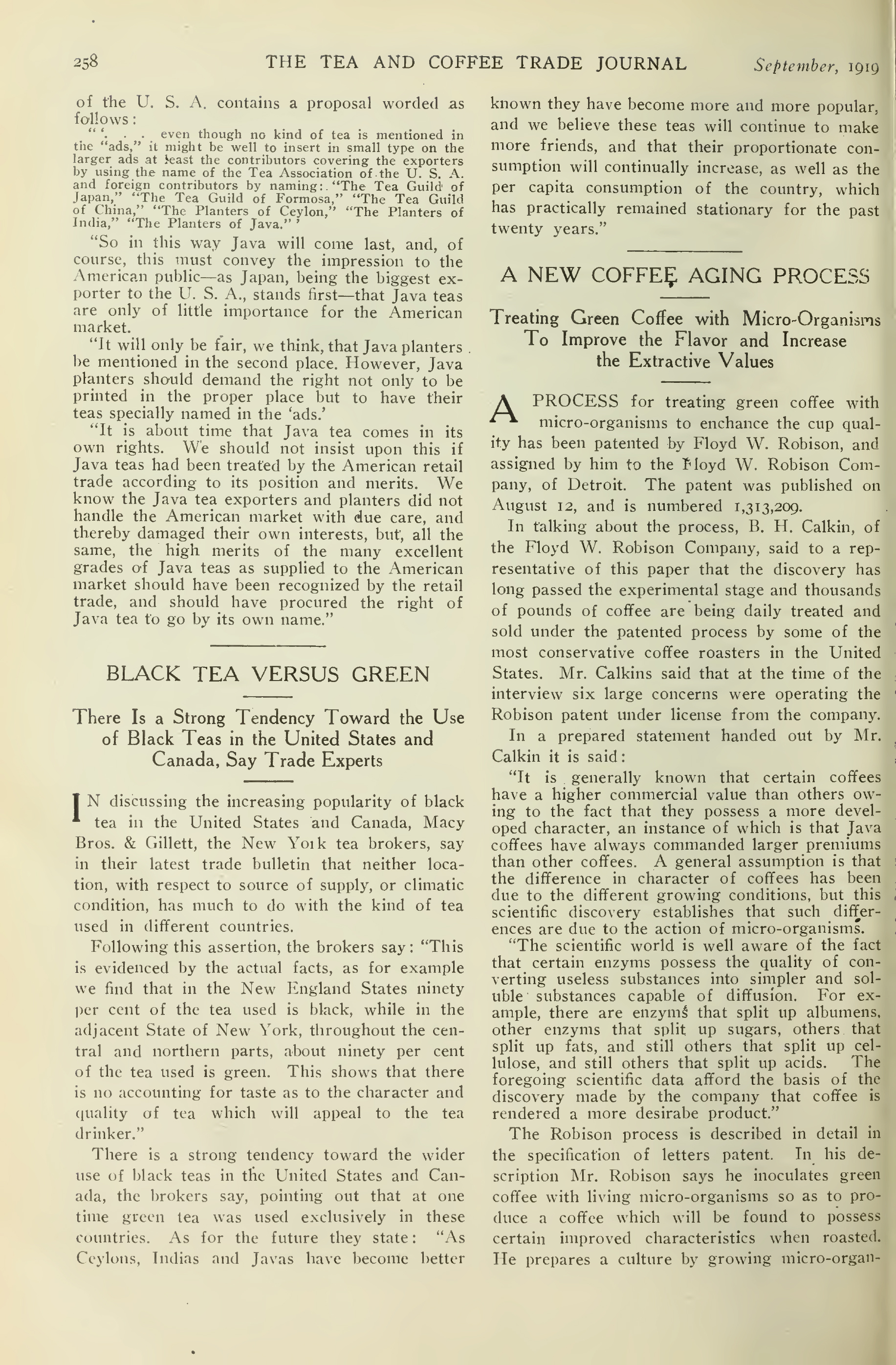 Tạp chí Tea & Coffee Trade Journal (số tháng 10/1920) cũng mô tả hiện tượng này:
